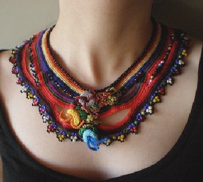 O zi speciala - 8 martie - este un prilej excelent de a posta citeva imagini ale unor bijuterii deosebite. Sunt crosetate din fire multicolore, uneori fiind adaugate si margelute de mici dimensiuni. Este in tendinte ca in 2011 sa porti astfel de bijuterii fantezie. Nu sunt greu de realizat si poti avea ceva unicat in fiecare zi (daca doresti). Eu ma bucur ca artele traditionale, precum crosetatul si tricotatul, revin in forta! Multe tinere nu au fost deloc preocupate sa le invete, dar acum sunt curioase sa incerce, ceea ce este de bun augur.